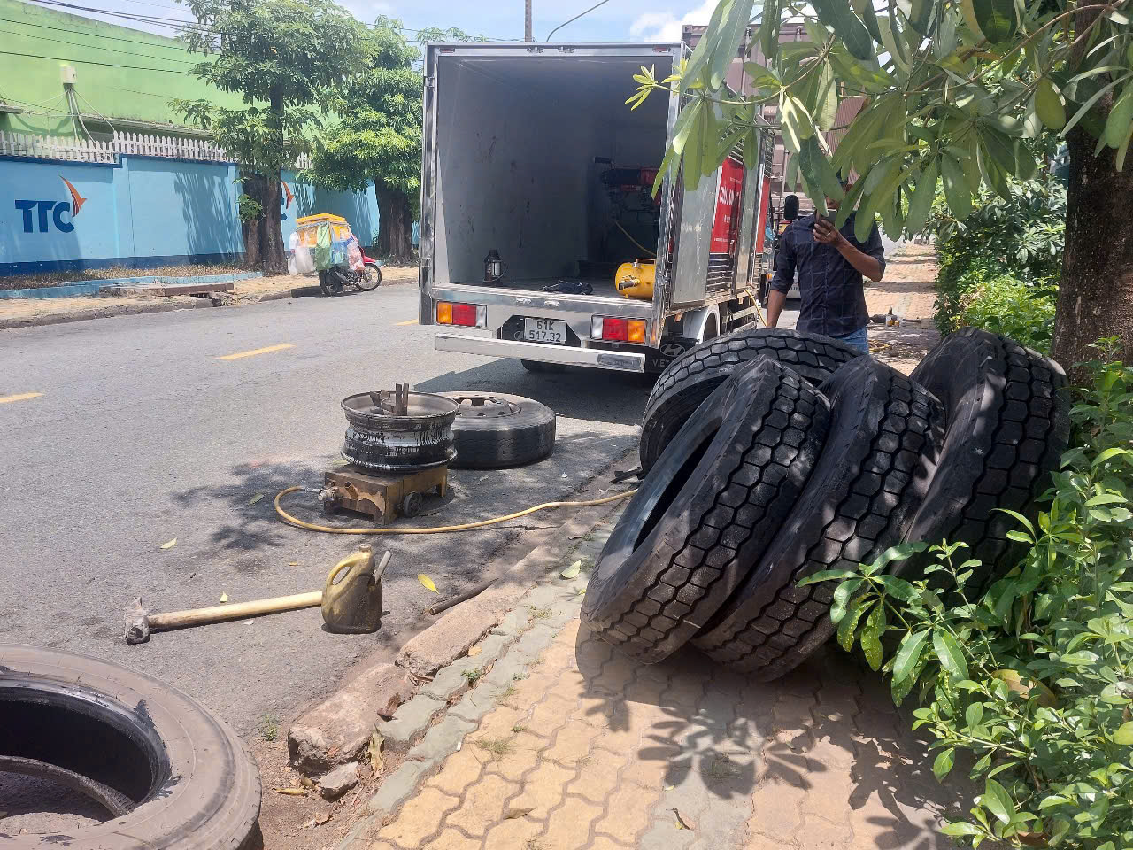 Không tự ý tháo lốp giữa đường đông xe